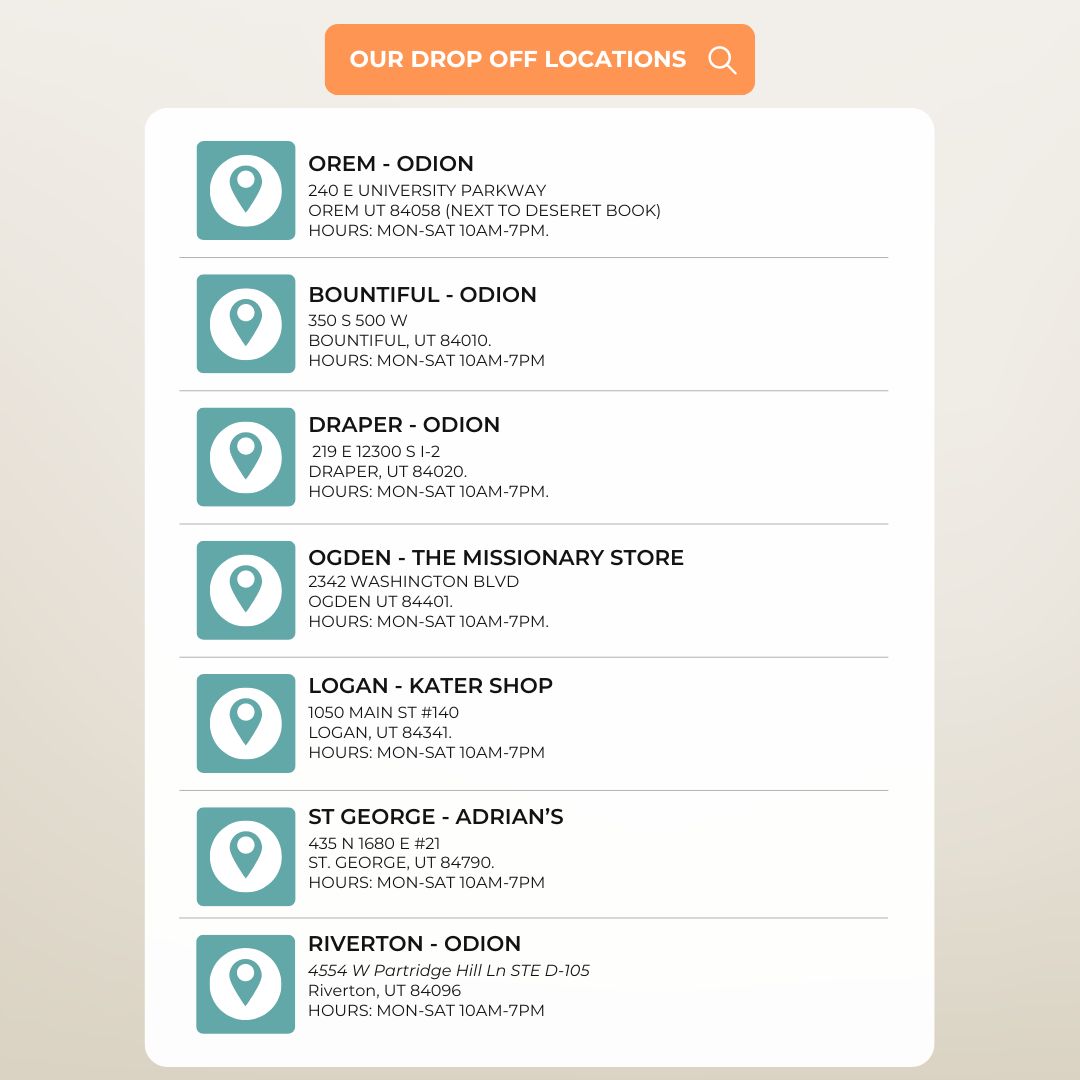 6. Ogden, Utah: (The Missionary Store) 2342 Washington Blvd, Ogden UT 84401.