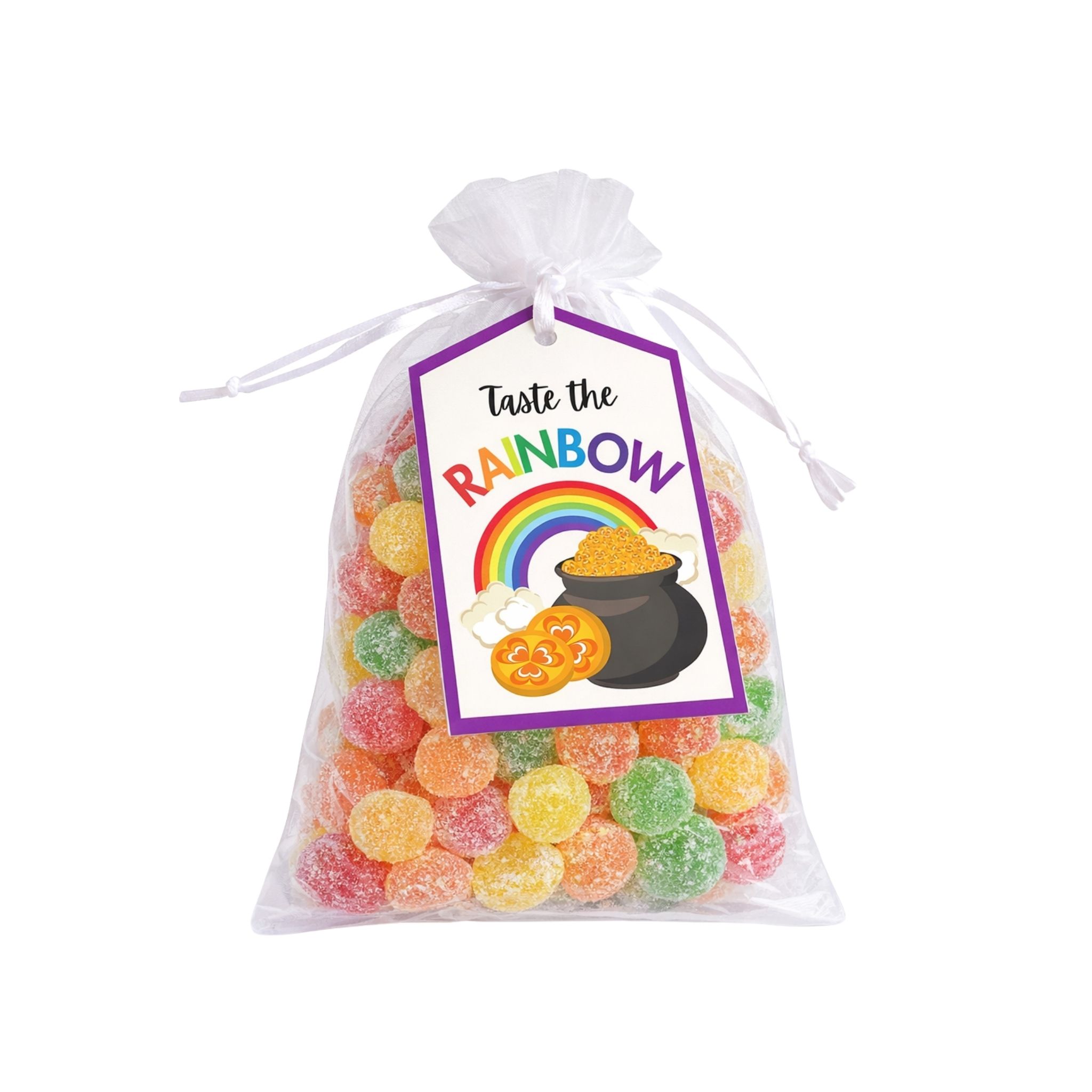 This curated treat bag is filled with a mix of DOTS. It features a custom-designed tag with the message “Taste the rainbow!” offering a lightweight way to send a tangible reminder of love to your Elder or Sister serving in the field.